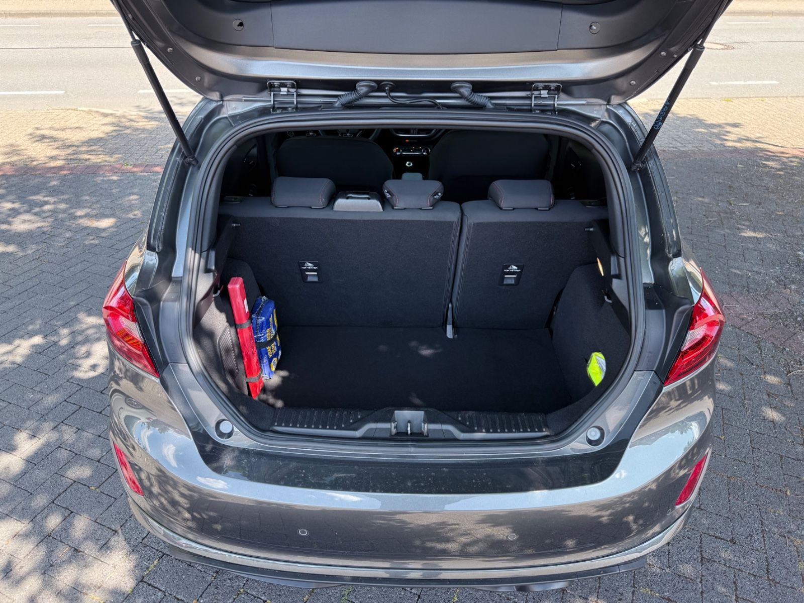 Airbag Beifahrerseite abschaltbar, Außenspiegel elektr. verstell- und heizbar, Außenspiegel Wagenfarbe, Blinkleuchte in Außenspiegel integriert, Body-Styling-Paket, Bord-/Verbrauchscomputer, Brillenfach in Dachhimmel / Dachkonsole integriert, Dachhimmel Stoff, dunkel, Einstiegschienen mit Modell-Schriftzug, Elektr. Bremskraftverteilung (EBD), Energierückgewinnung (Smart Regenerative Charging), Fahrassistenz-System: Berganfahr-Assistent (Hill-Holder), Notbrems-Assistent, Spurhalteassistent, Handbremshebelgriff Leder, Intelligent Protection System (IPS), Isofix-Aufnahmen für Kindersitz, Kühlergrill im Sport-Design, Lenksäule (Lenkrad) höhen-/längsverstellbar, Leseleuchte vorn, Mittelkonsole, Motor 1,0 Ltr. - 103 kW EcoBoost KAT, My Key (2. Fahrzeugschlüssel programmierbar), Nebelscheinwerfer mit statischem Abbiegelicht, Otto-Partikelfilter (OPF), Pedale Aluminium, Reifen-Reparaturkit, Reifendruck-Kontrollsystem, Rücksitz geteilt, Rücksitzlehne klappbar, Abgasnorm Euro 6d-TEMP, Scheinwerfer mit Ausschaltverzögerung, Scheinwerfer-Assistent mit Tag-/Nachtsensor, Sitz vorn links höhenverstellbar, Sonnenblende links mit Spiegel, Sonnenblende rechts mit Spiegel, Sport-Fahrwerk, Sportsitze vorn, Türgriffe außen Wagenfarbe, Verglasung getönt, Warnanlage für Sicherheitsgurte hinten